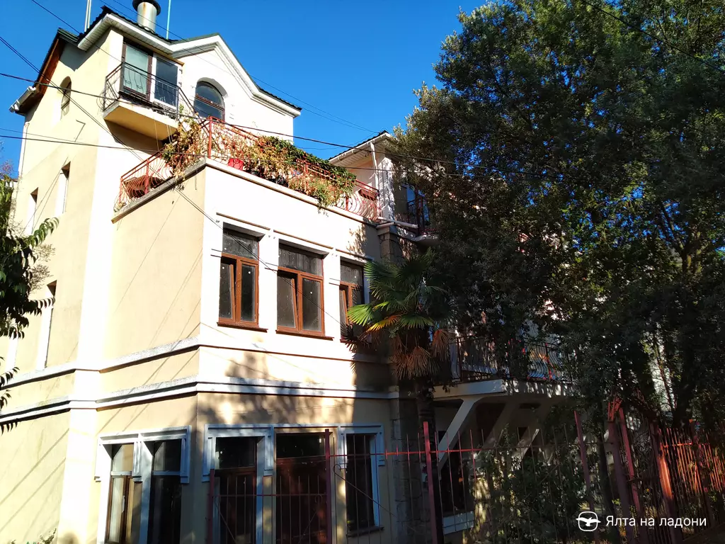 Это бывшая дача Безобразовых, одна из самых красивых и крупных дач Чайной горки Ялты её дореволюционного периода.